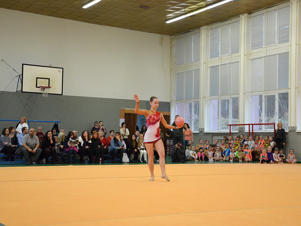 Poslední exhibiční blok patřil Kristině Bernatové a její závodní sestavě s míčem, po které následovalo vystoupení moderního tance v podání Anny Špičkové a Karolíny Kousalové.