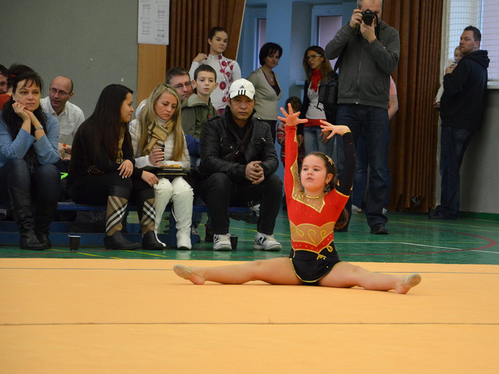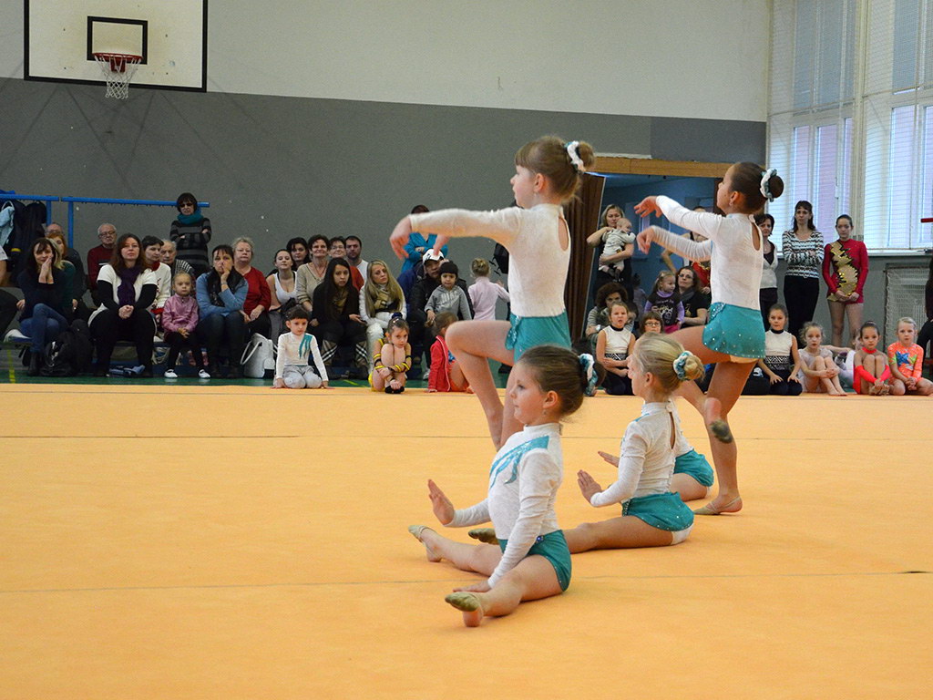 Doslova hvězdnou exhibicí pak bylo vystoupení naší skupinové sestavy „Hvězdiček“ ve složení Nela Červenková, Aneta Divišová, Kamila Herianová, Ajša Lochsmidtova a Klára Pelíšková. Skupinové sestavy se díky členské základně do závodního programu našeho oddílu opět po dlouhých letech vrátily a diváci jistě sami viděli, proč jsme na ně hrdí.