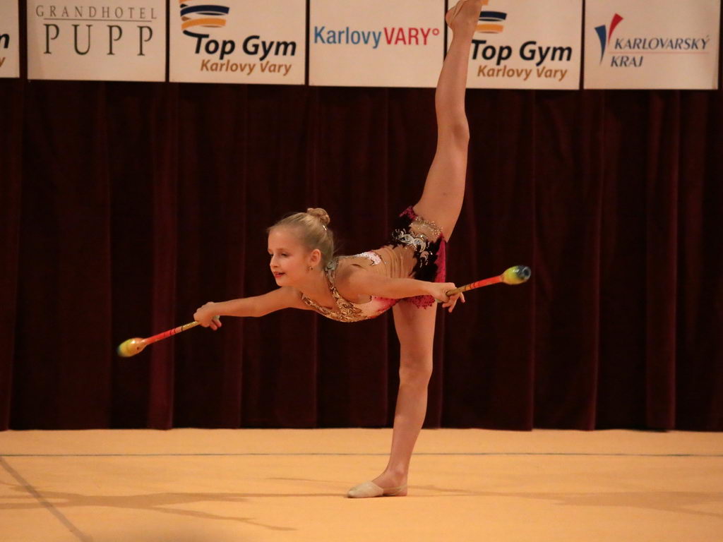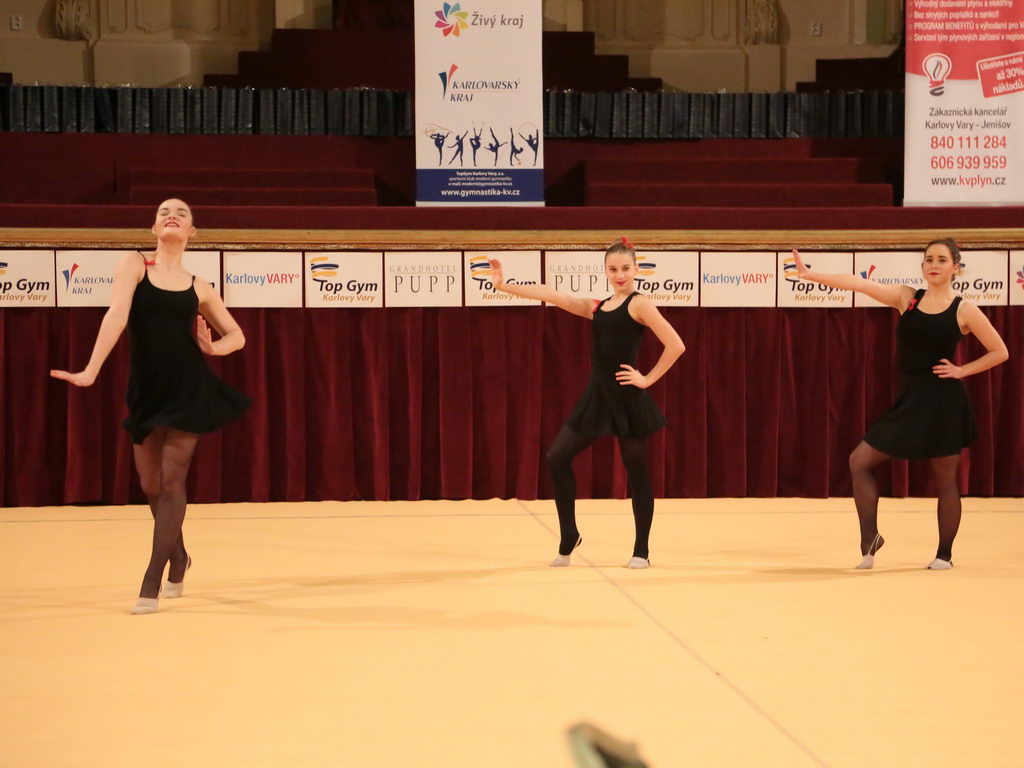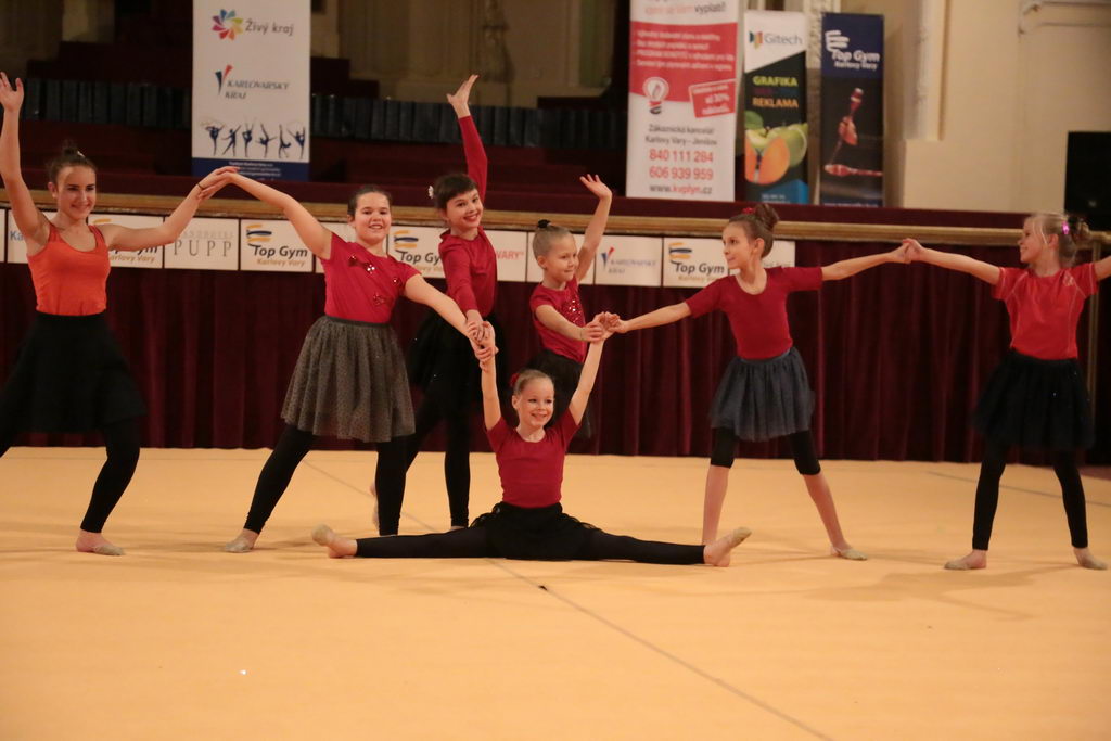 V nádherném slavnostním sále Grandhotelu Pupp shlédlo 350 diváků vánoční exhibiční vystoupení moderních gymnastek sportovního klubu TopGym a jeho hostů.