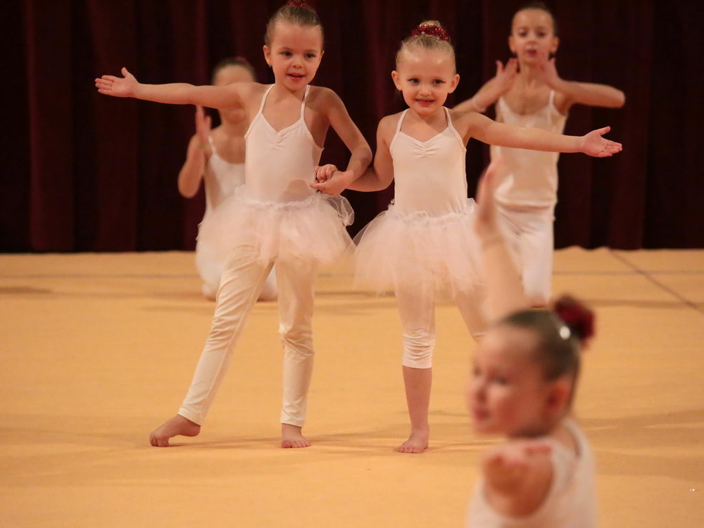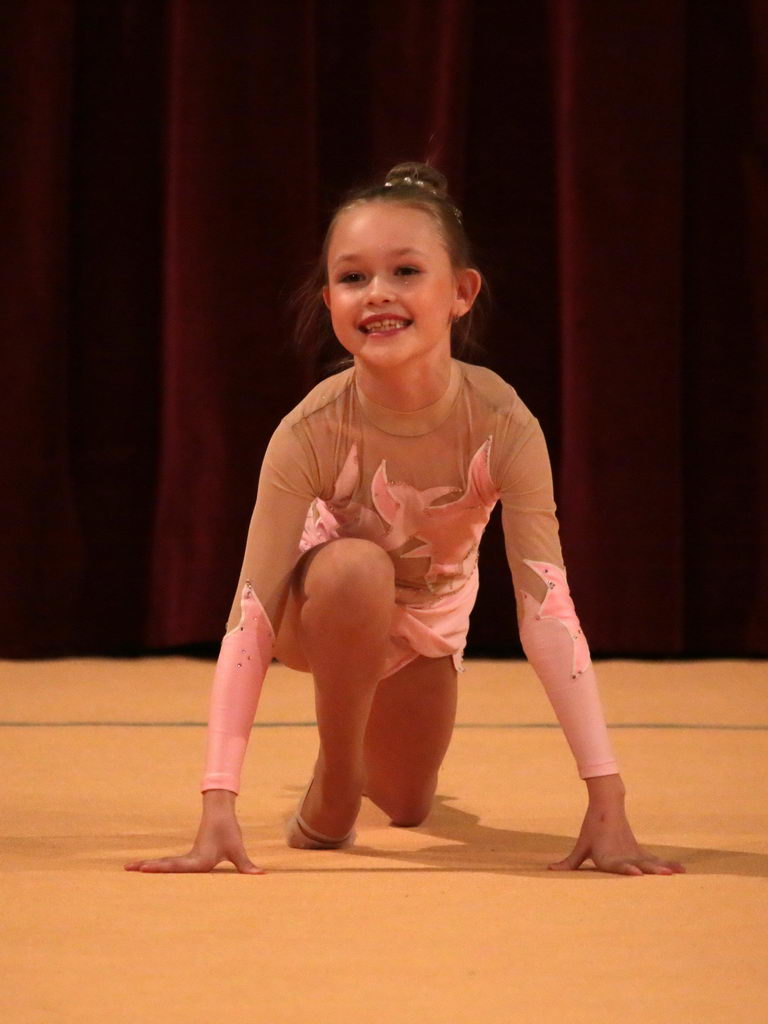 Naše nejmenší a začínající gymnastky předvedly vánoční „Rolničky“, které s nimi secvičily trenérky Pavlína Hanková, Petra Pelíšková a Zuzana Kopfstein. Větší děvčata pak předvedla „Veselou polku“ v choreografii Natalii Lakšiny.