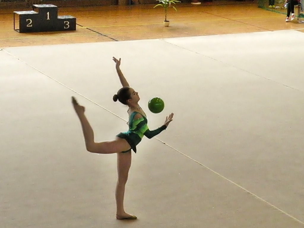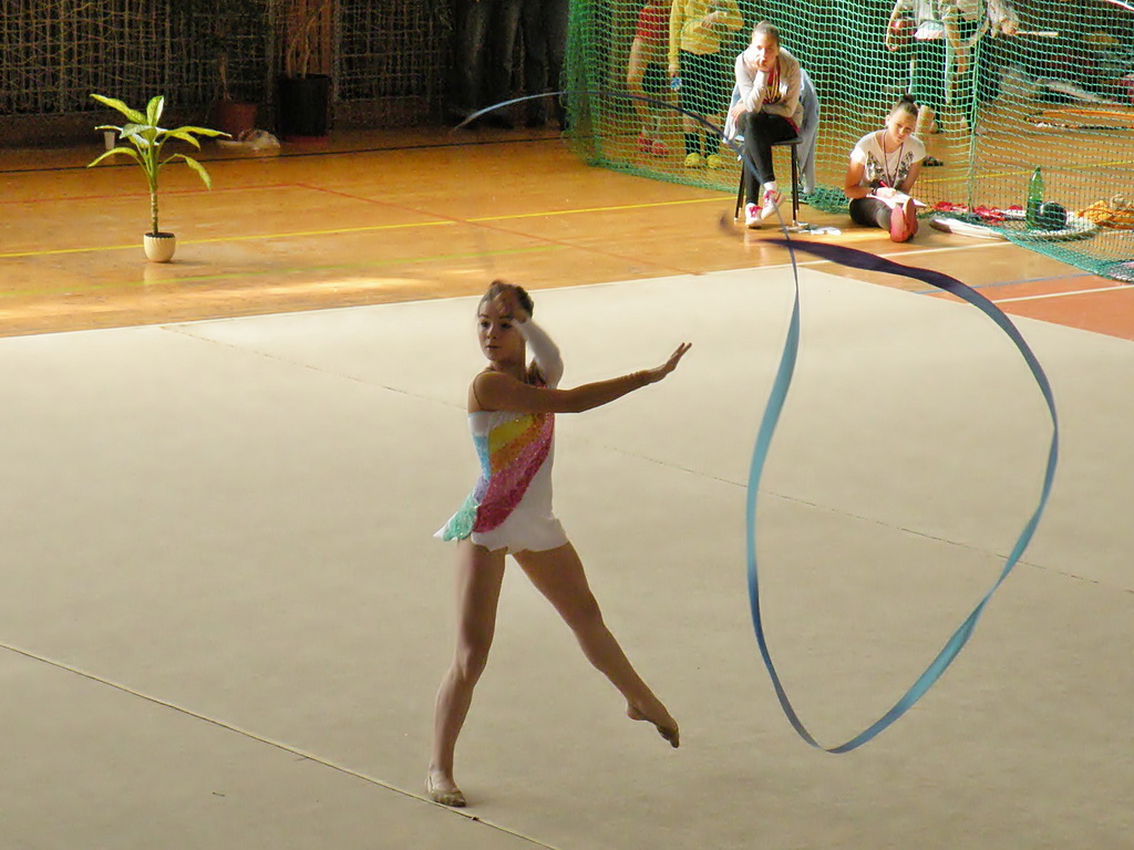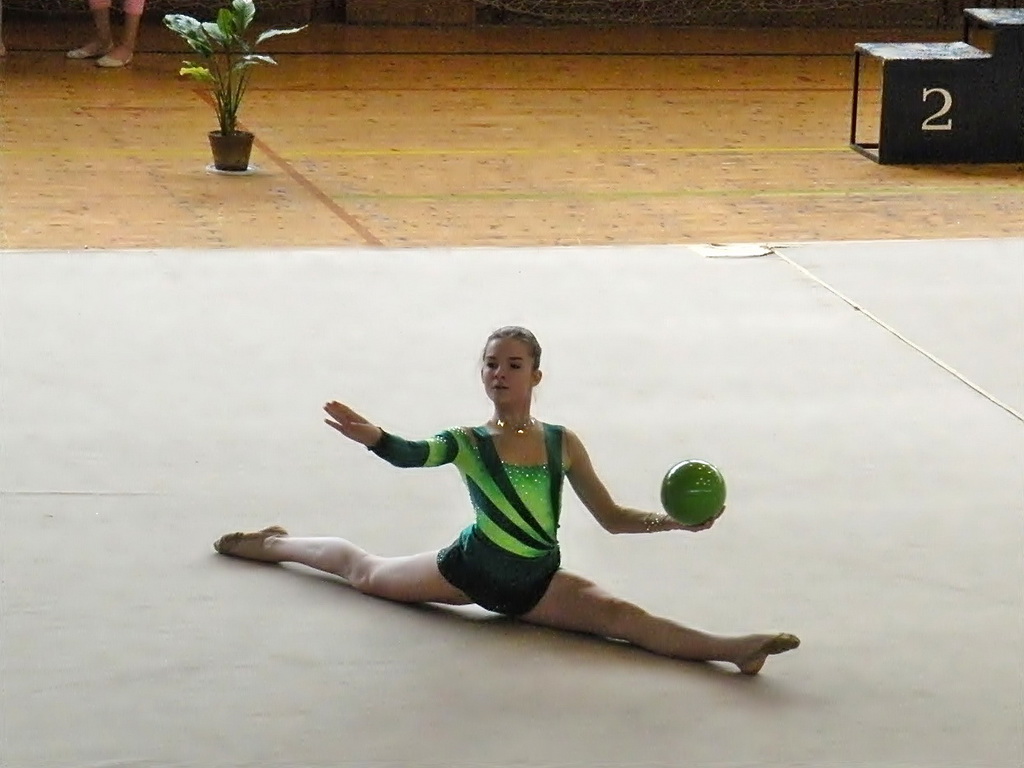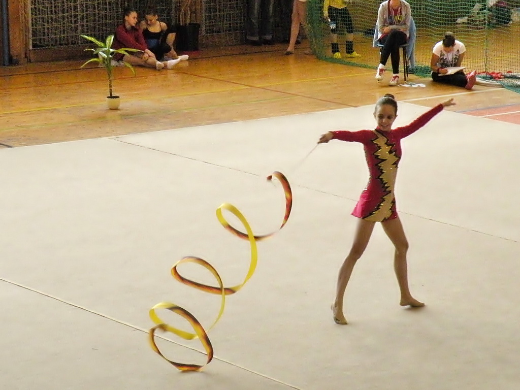Zuzana Rubášová cvičila nejdříve se stuhou, která jí opravdu sluší. Na provedení ale byly patrné známky únavy či nedostatku energie, které se odrazily i ve známce 15,175. Sestava s míčem dopadla o poznání lépe a hodnocení 15,375 v celkovém součtu znamenalo 8. místo. Budeme Zuzce držet palce, aby její vystoupení 19. 5. na mistrovství republiky kadetek dopadlo co nejlépe.