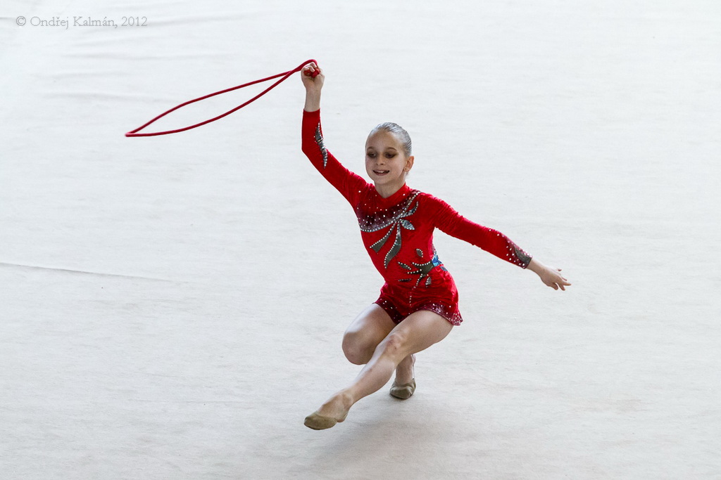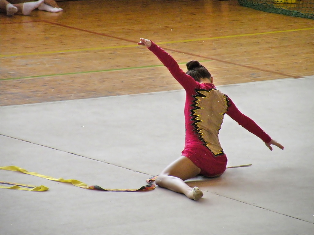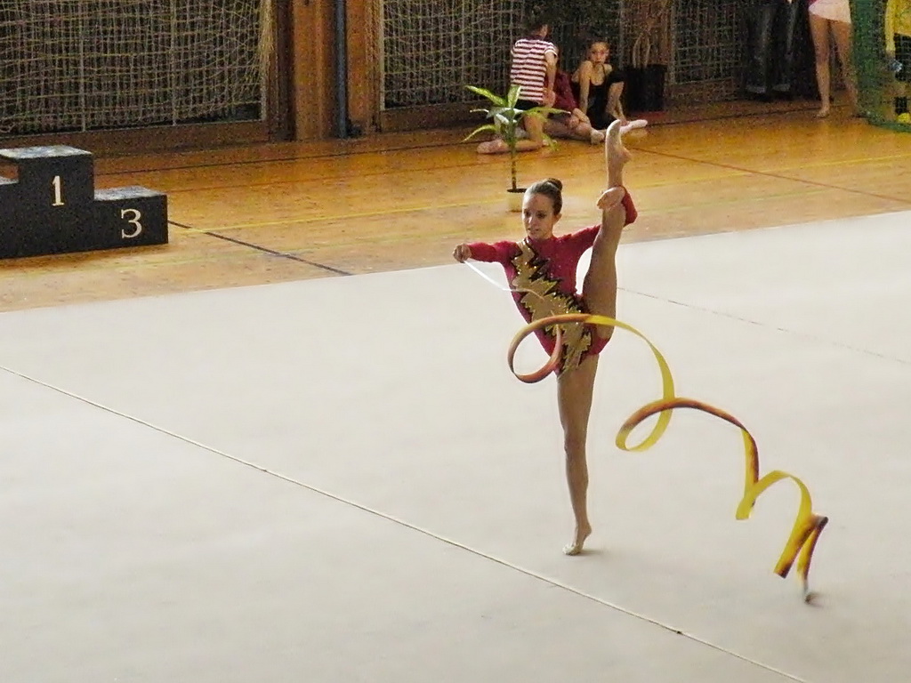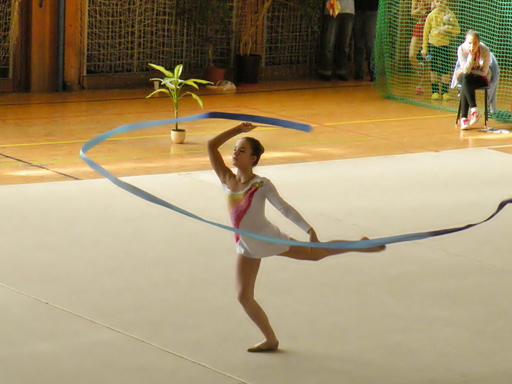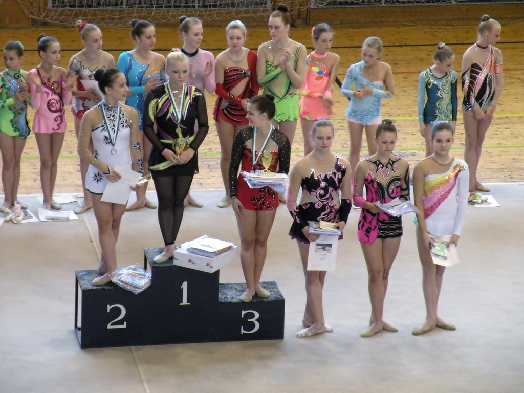 Zuzana Rubášová cvičila nejdříve se stuhou, která jí opravdu sluší. Na provedení ale byly patrné známky únavy či nedostatku energie, které se odrazily i ve známce 15,175. Sestava s míčem dopadla o poznání lépe a hodnocení 15,375 v celkovém součtu znamenalo 8. místo. Budeme Zuzce držet palce, aby její vystoupení 19. 5. na mistrovství republiky kadetek dopadlo co nejlépe.