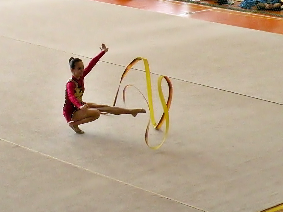 Tentokrát nastupovala jako první z celé startovní listiny 16 závodnic Kristina Bernatová. V sestavě s míčem předvedla Kristina svůj standardně jistý výkon, škoda jen malého výpadku koncentrace uprostřed sestavy a z toho vyplývající nižší hodnocení 15,100. Sestavu se stuhou zacvičila s lehkostí a ladností a s minimem chybiček, ve výsledku16,100 acelkové 6. místo s nepatrnou ztrátou 0,1 na chomutovskou závodnici na místě pátém.
