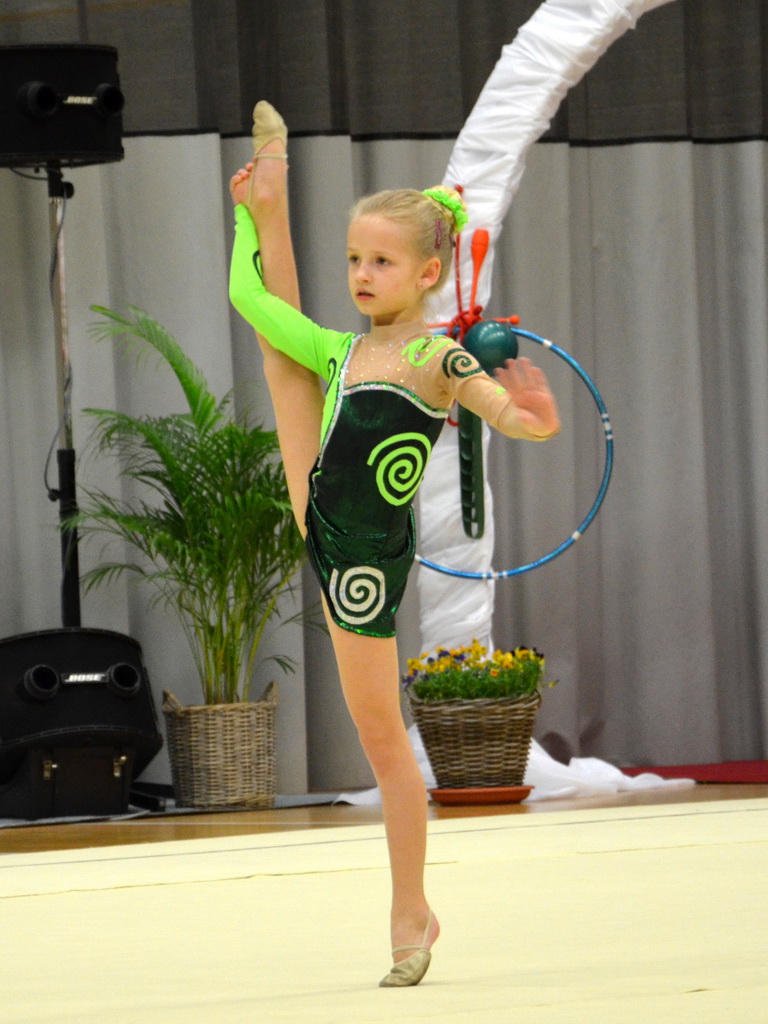Jako první své dovednosti předvedla sedmiletá talentovaná naděje Klára Orlová, která ve volném programu závodí teprve druhý měsíc. „Tu jsme z důvodu technického rozpisu museli do belgických závodů postaršit, takže soupeřila se závodnicemi z vyšší kategorie“, popsala obtížnost jejího závodu Špičková. I přesto se Klára mezi dalšími devíti soupeřkami neztratila. Naopak, v sestavě bez náčiní předvedla špičkové provedení, což rozhodčí ocenili nejvyšší známkou. Bohužel, druhou sestavu s obručí nemá zatím dobře zažitou, takže známka byla podprůměrná. Nicméně i tak to v součtu stačilo na skvělé třetí místo mezi o poznání zkušenějšími závodnicemi.