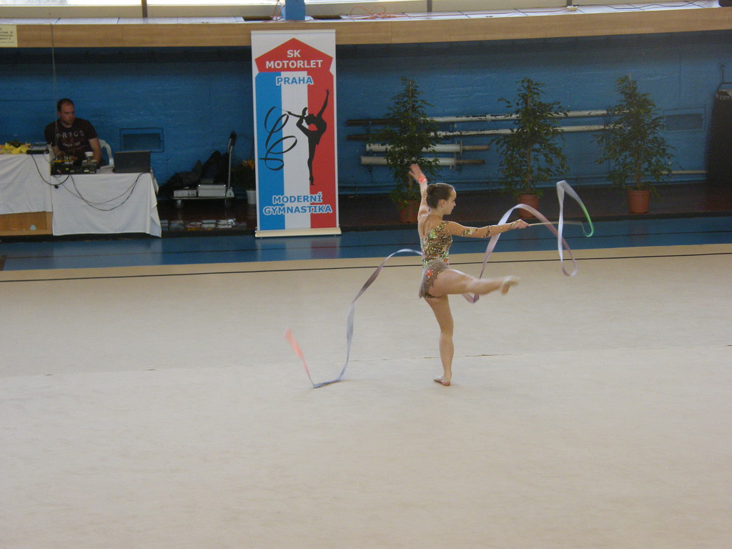 Anička Špičková překvapila krásnou stuhou - opravdu se jí moc povedla (a bodově to také rozhodčí ocenili), škoda jen toho stresem poznamenaného míče, tam velmi ztratila - bohužel odražené riziko a cesta mimo plochu je ve výsledné známce znát.