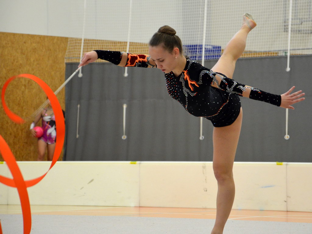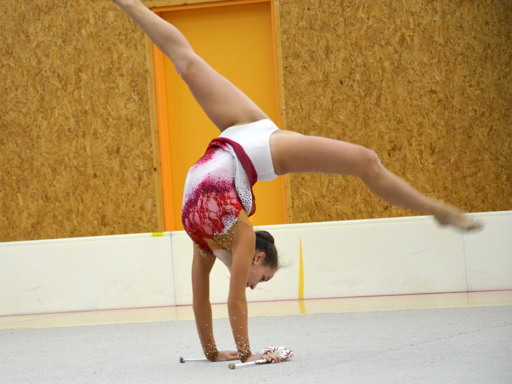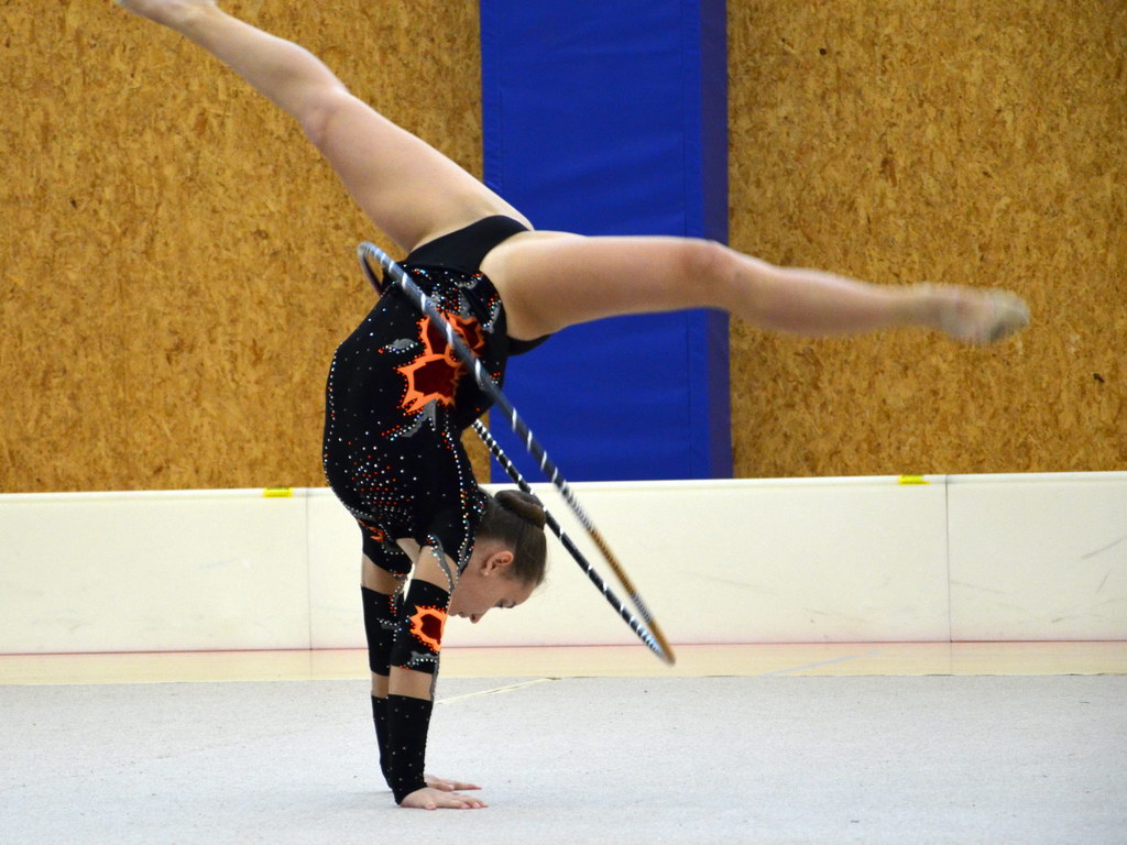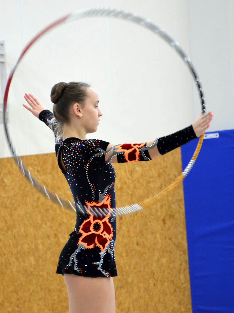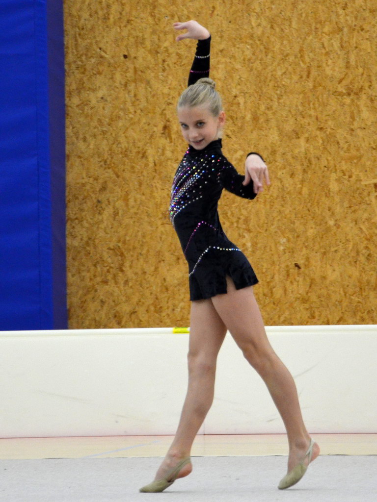 Jako první v kategorii kadetek mladších předvedla svoji formu Klára Tamchynová. První sestavu s obručí zvládla velmi pěkně a to jí do druhé sestavy bez náčiní přidalo ještě větší jistotou, což bylo také vidět na provedení. „Kláře obě sestavy sedí a tak není divu, že jí podané výkony zajistily druhou příčku. Ke zlatu chyběly necelé 2 body,“ shrnula trenérka Špičková.