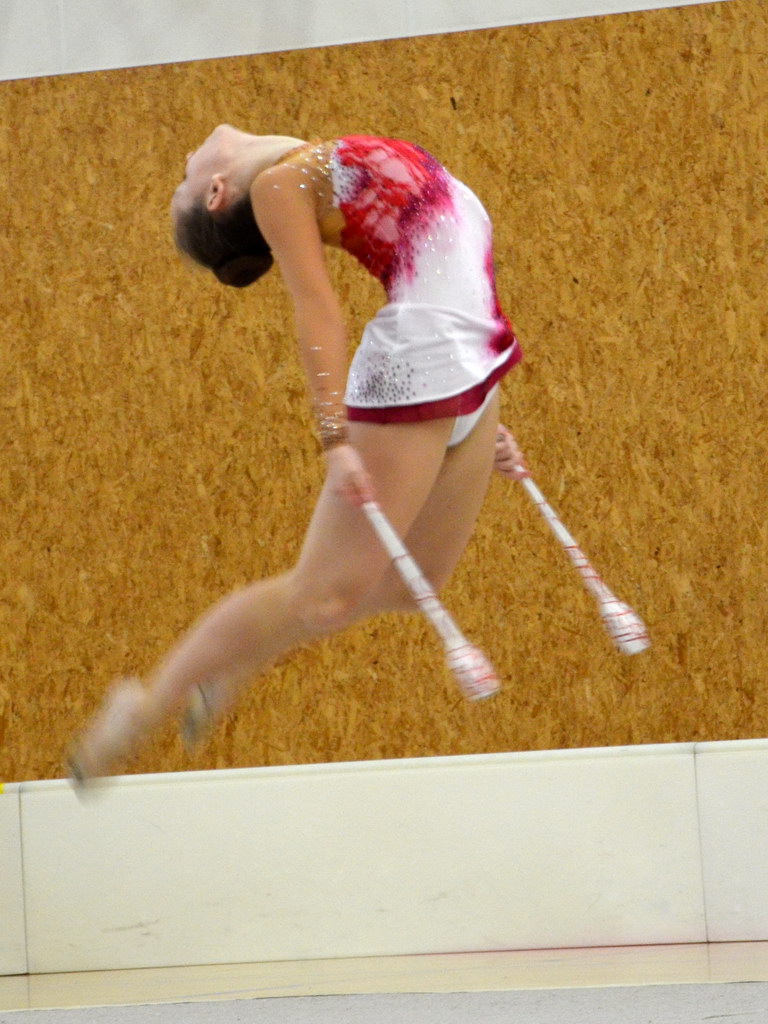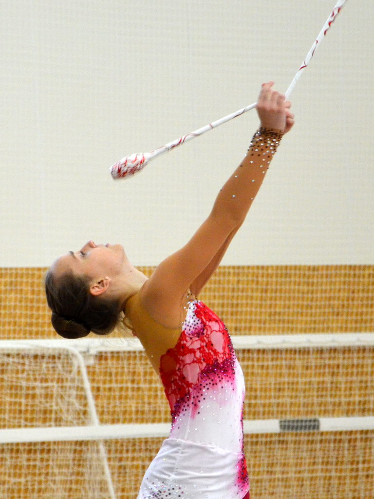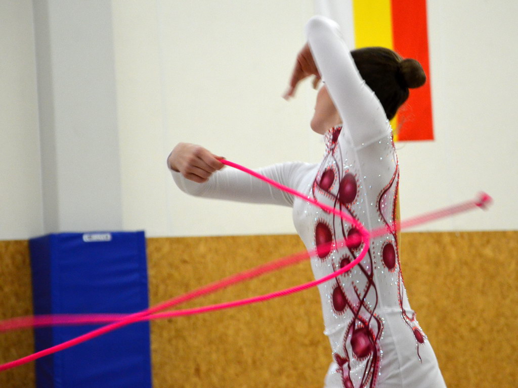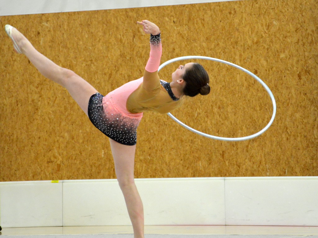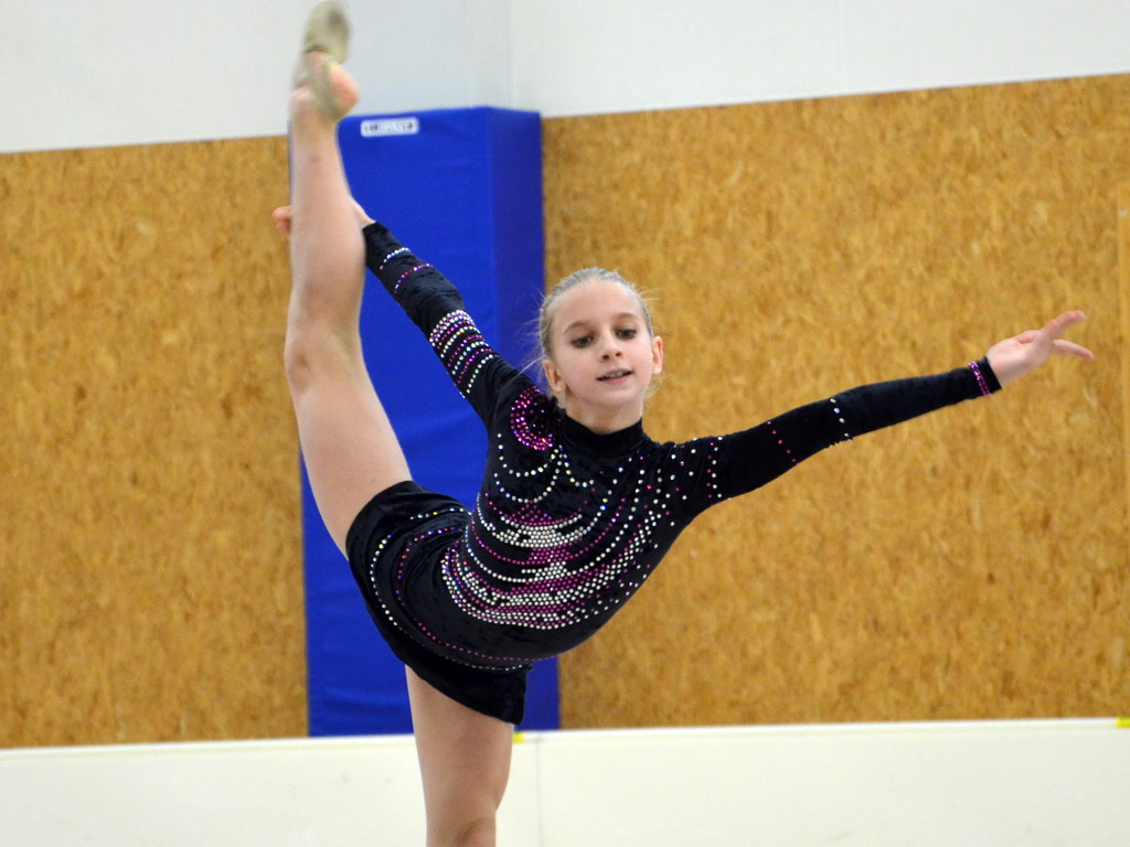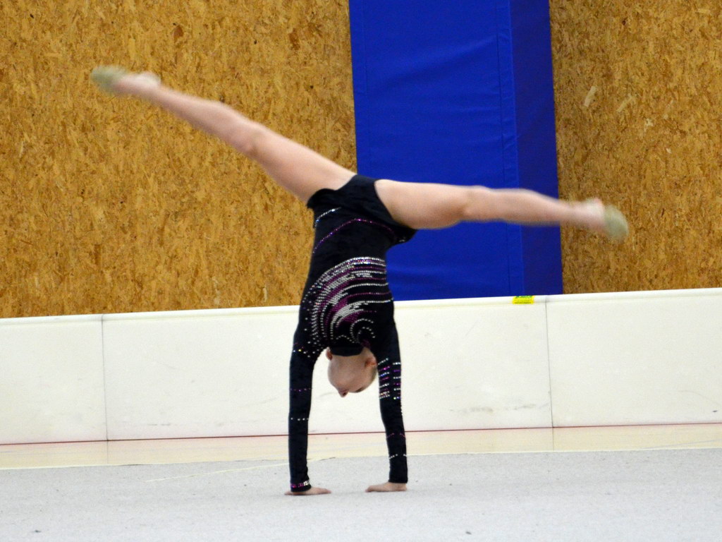 Jako první v kategorii kadetek mladších předvedla svoji formu Klára Tamchynová. První sestavu s obručí zvládla velmi pěkně a to jí do druhé sestavy bez náčiní přidalo ještě větší jistotou, což bylo také vidět na provedení. „Kláře obě sestavy sedí a tak není divu, že jí podané výkony zajistily druhou příčku. Ke zlatu chyběly necelé 2 body,“ shrnula trenérka Špičková.