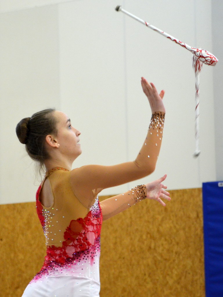 Druhou karlovarskou závodnicí byla Kristina Bernatová v kategorii kadetek starších. „Jako první na mě čekala sestava se švihadlem, která patří mezi mé oblíbené, ale neměla jsme dost natrénováno, jak bych chtěla a tak se některé prvky úplně nepovedly na 100%,“ shrnuje svůj výkon Kristina. I když se švihadlem tradičně slaví bodový úspěch, tentokrát byla povedenější druhá sestavy s obručí, do které nastoupila sebevědomě a bylo to vidět na provedení i vysokém ohodnocení poroty. Na druhou soupeřku získala náskok 3,45 bodů a tak obsadila stejně zlatou příčku jako loni.