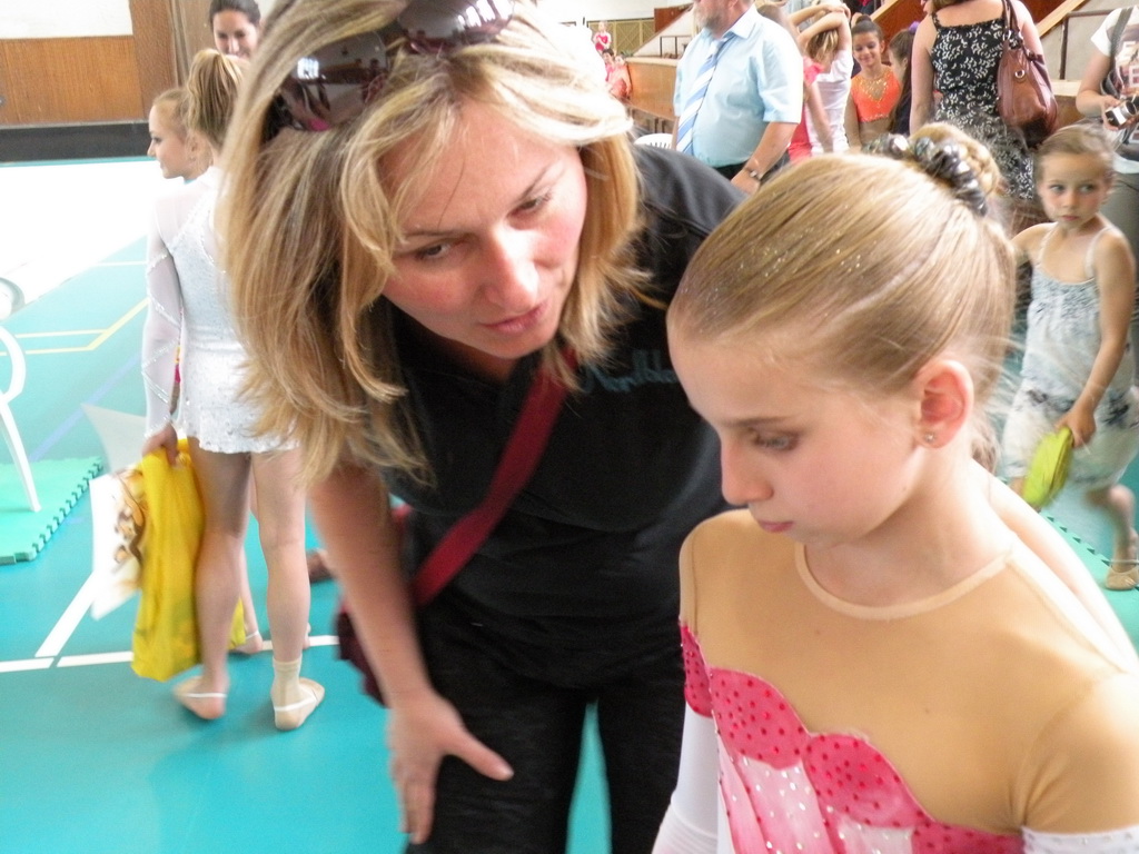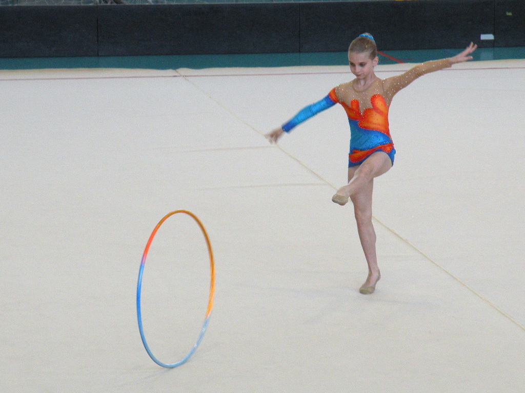 První závodnice ze startovní listiny se omluvila a tak Klárka, vylosovaná druhá v pořadí, závody zahajovala a tudíž nemohla ani na slavnostní nástup. Přes tuto nevýhodu se jí sestava s obručí velmi vydařila, zacvičila s krásným úsměvem a lehkostí. Za obruč ale obdržela známku ,,jen" 15,225, protože od první závodnice se počítají všechny ostatní známky a dle slov naší rozhodčí mohla být známka vyšší. Ale to je úděl nepopulárního prvního startovního místa.