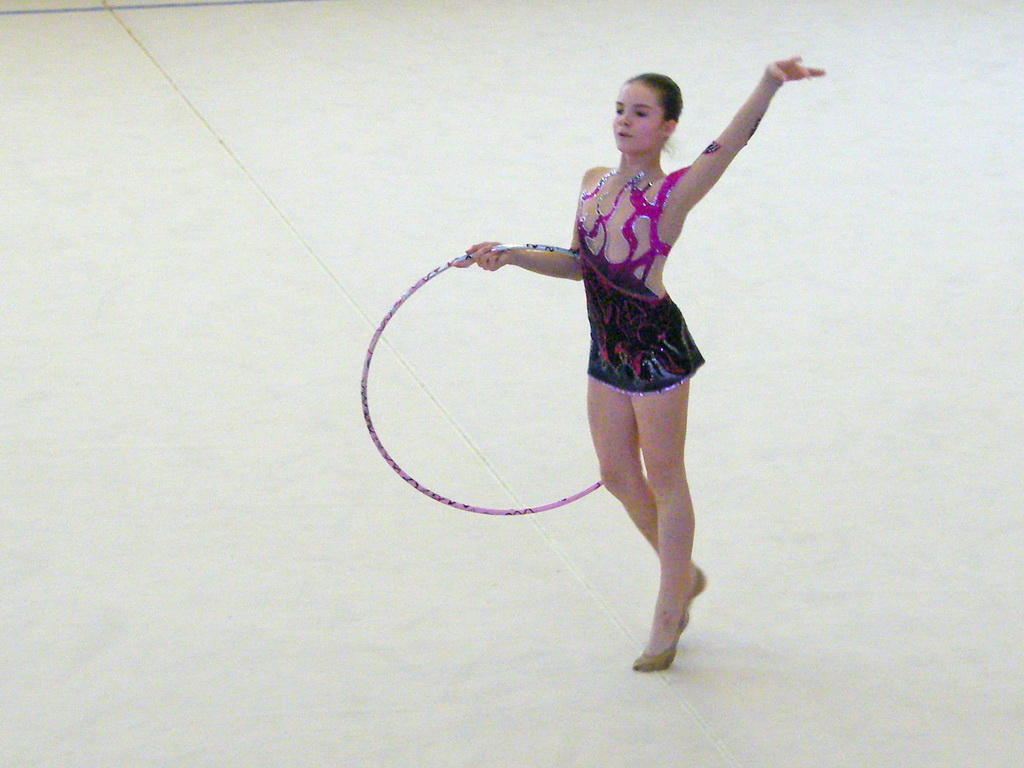 Tínka Bernatová patří v současné době k nejlepším karlovarským moderním gymnastkám a všichni jí jako favoritce závodů držely moc palečky, když nastupovala jako poslední z karlovarského oddílu do bojů se svými sestavami. Bohužel nezvládnutí rizika v obruči vyvolalo sled dalších chybiček, což znamenalo nejen ztrátu cenných bodů do začátku, ale bohužel i ztrátu jistoty a odhodlání. Sestava s míčem se pak v důsledku předchozího neúspěchu nepovedla úplně tak, jak bychom všichni chtěli, manipulace a hlavně výraz projevu se malinko vytratily. Tínka se však nedala a s odhodláním sobě vlastním i ve stínu hrozícího neúspěchu nastoupila na sestavu se stuhou, kde doprovodná hudba v rytmu tanga vždy všechny zaručeně rozehřeje. Ale aby smůly nebylo dost, musela hned na počátku sestavy rozvazovat nečekaně vzniklý uzel na stuze, se kterým nelze pokračovat. Nicméně následující prvky byly krásně dotažené, optická kresba stuhy, dobře provedené skoky, zkrátka vše jak mělo být. Výsledné celkové 6. místo bylo nakonec i přes veškerou smůlu víc než důstojné.