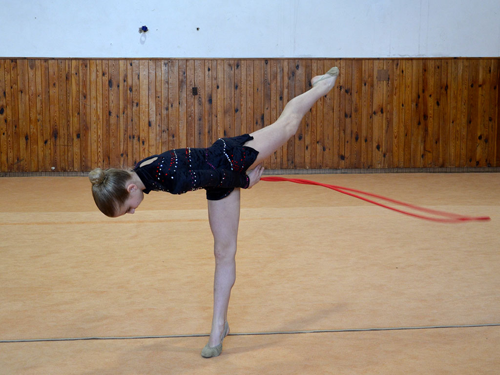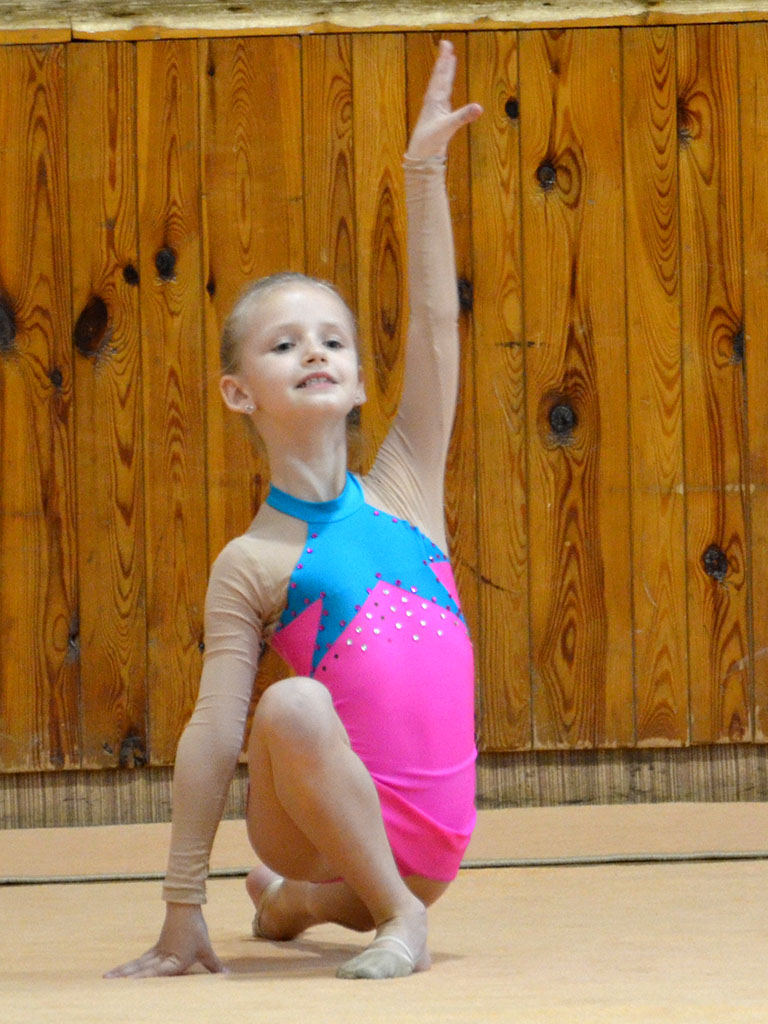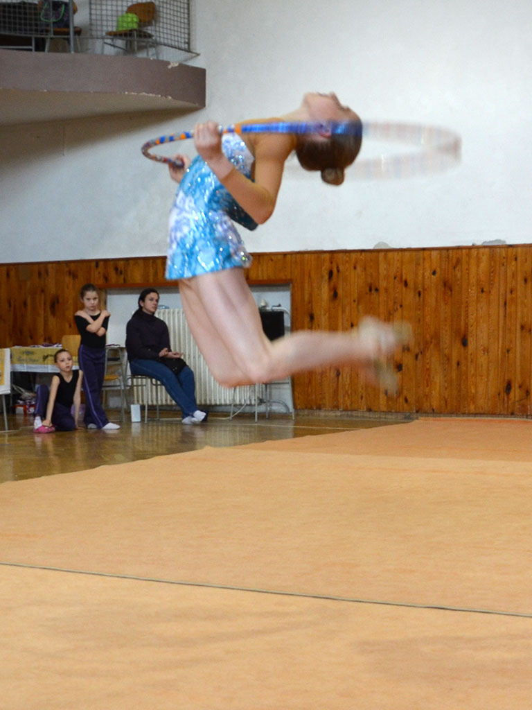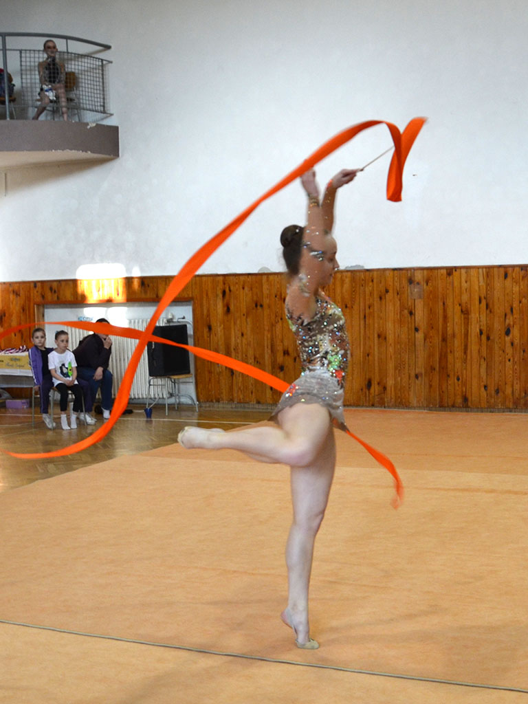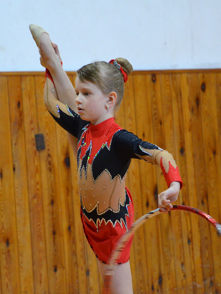 Naše nejmladší závodnice Klára Svobodová svou obruč jede závod od závodu lépe, jen tentokrát zapracovaly nervíky a let náčiní přes plochu a následná ztráta koncentrace se bohužel odrazily i na známce. Druhou sestavu již zajela velmi pěkně, má krásné dopnuté nárty, a když se zadaří, tak i krásný úsměv. Jen tak dále!