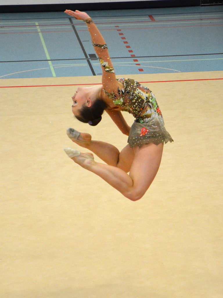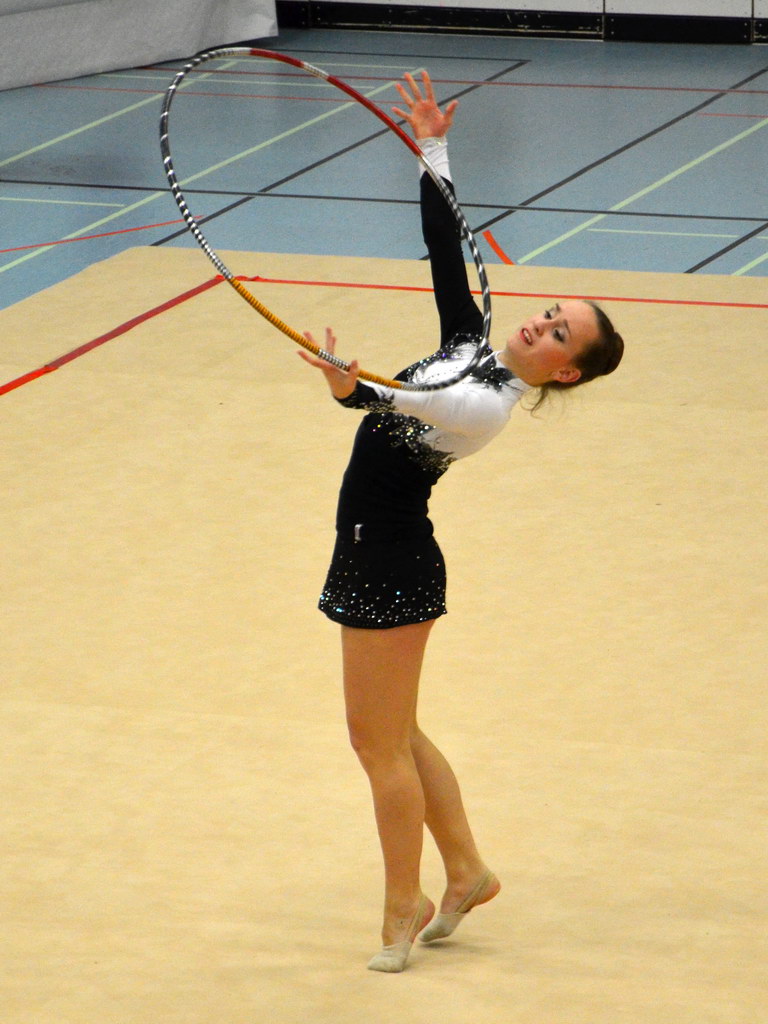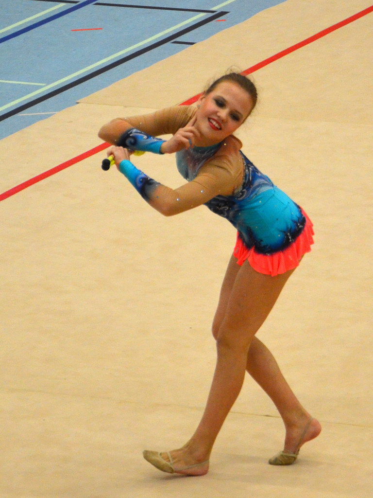Daria Komarova byla naší jedinou moderní gymnastkou v kategorii „Juniors level B“, jelikož zkušenější Klára Tamchynová se zotavuje po zlomenině prstu. Pro Dariu to byly teprve třetí závody, nicméně vzhledem k jejímu permanentnímu optimismu jsme neměli žádné obavy, jak to psychicky zvládne. První provedení s obručí zajela „standardně“ na úrovni svých dovedností, tj. s různými technickými chybičkami, ale o to lepším výrazem, který opravdu umí a mohla by jej rozdávat dalším. Ve druhém provedení s kužely se ale očekávání nenaplnilo. Jednou se to stát muselo, a tak jak se na předchozích závodech Darie s kužely dařilo, tak si právě na těchto svoji smůlu vybrala. Kužely jí třikrát spadly, i když naštěstí pouze u těla, a v závěru sestavy vynechala některé prvky, což velmi rozhodilo choreografii. I tak ale její výkon ve startovním poli dvaceti závodnic stačil na důstojné 17. místo a potvrdil tak její zlepšující se formu.
