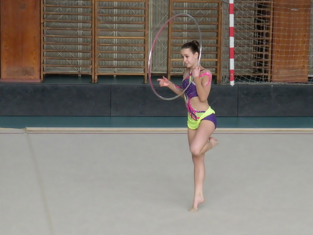Anička znovu zajela svou nádhernou obruč o něco lépe a také to rozhodčí ocenili 4. místem za libovolné náčiní.