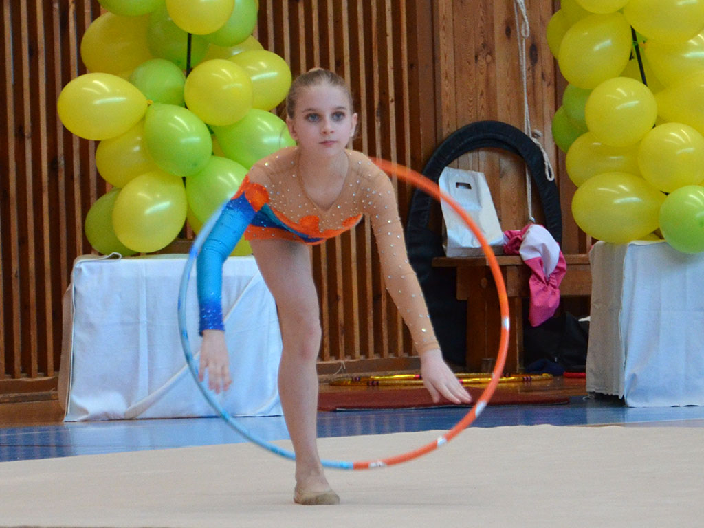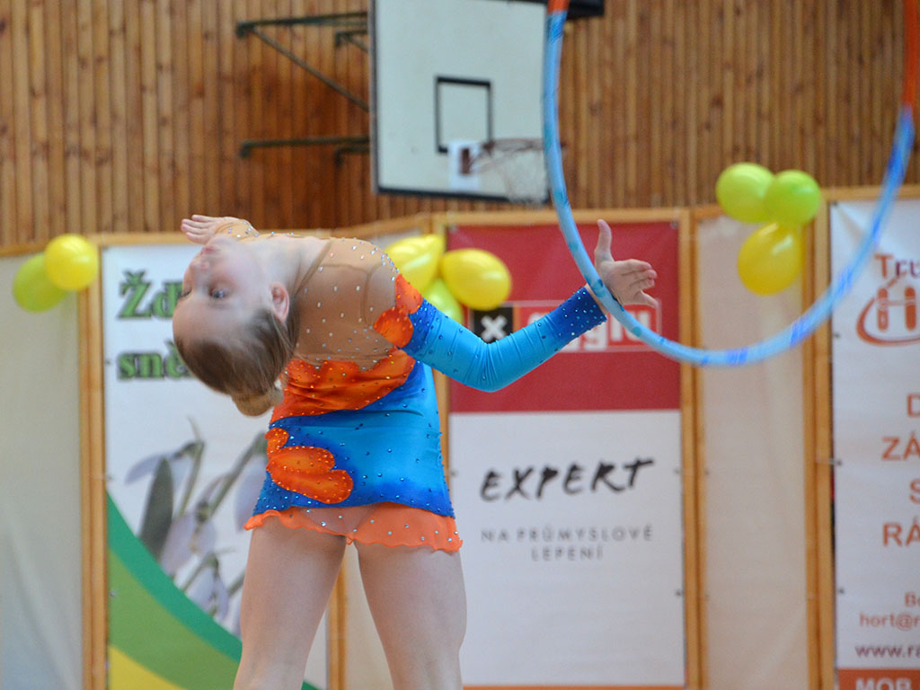 Jako první se v kategorii kadetky mladší představila Klára Tamchynová, která před rozhodčími a publikem dokázala, že už to s míčem docela umí i navzdory nechycenému riziku. Sestavou s obručí pak svoji formu i soutěživost potvrdila a obsadila ve skupině 16 závodnic výborné 7. místo.